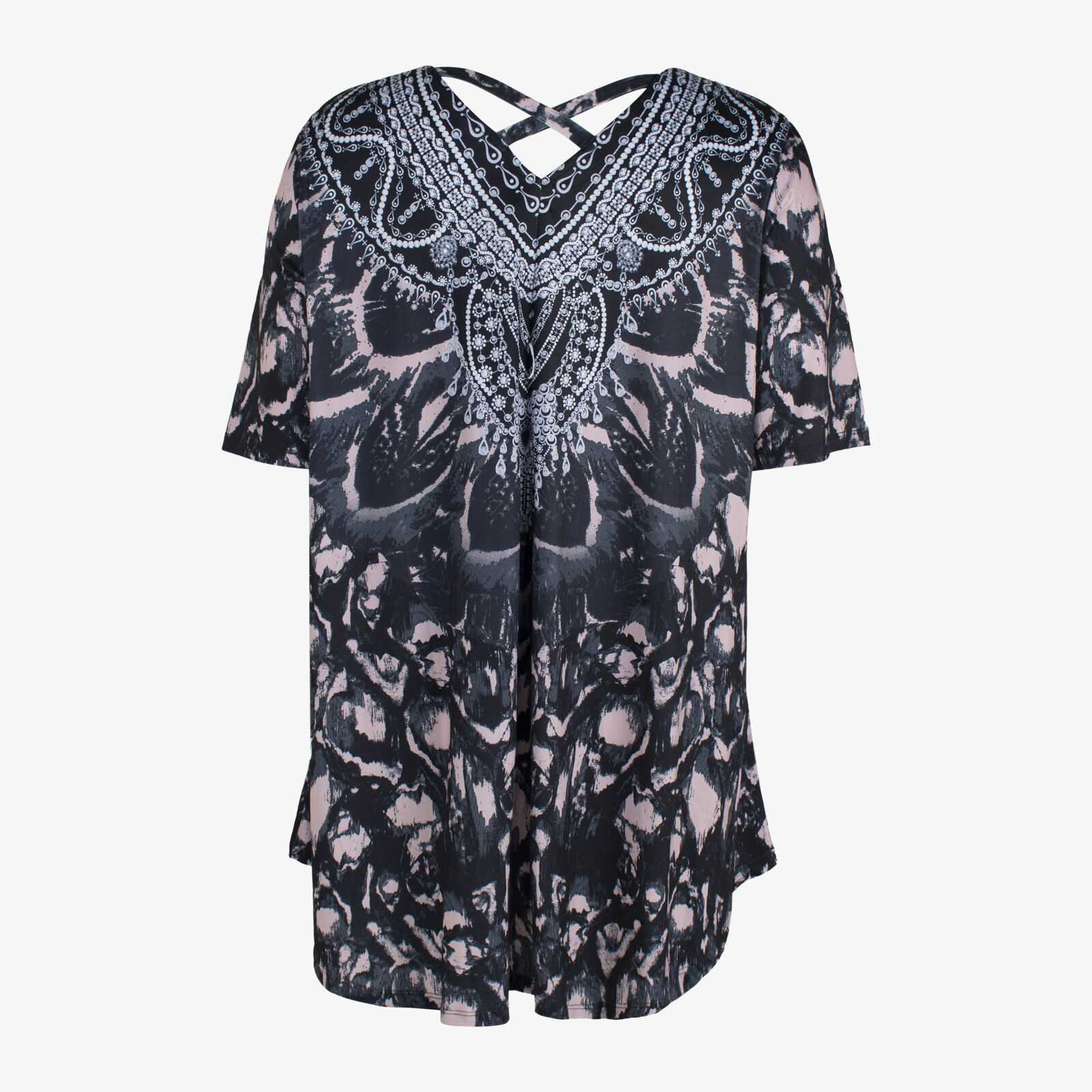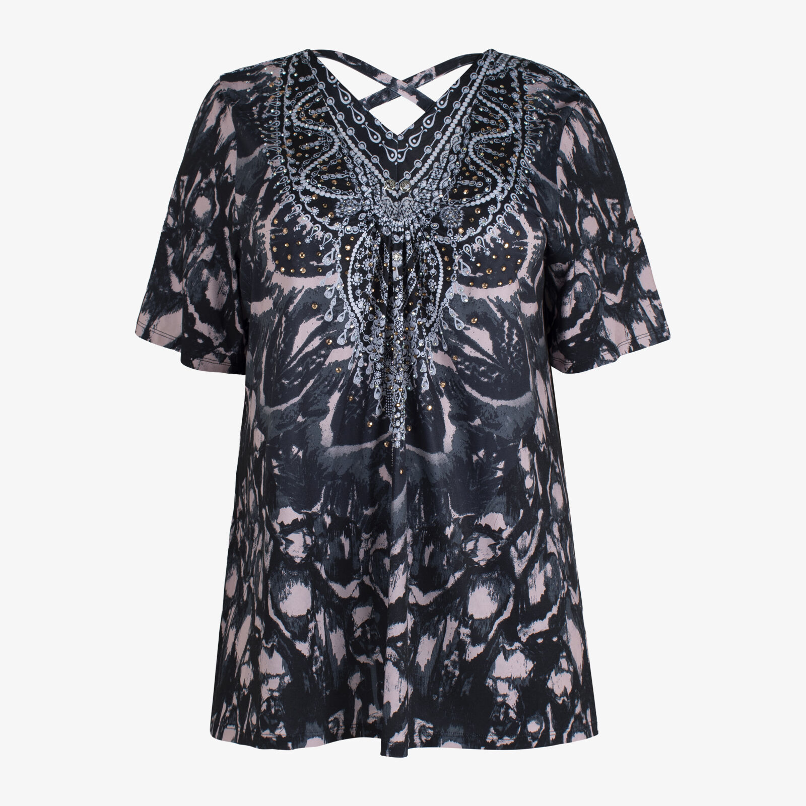 Taking Shape Short Sleeve Swing Top With Gem Embellishment