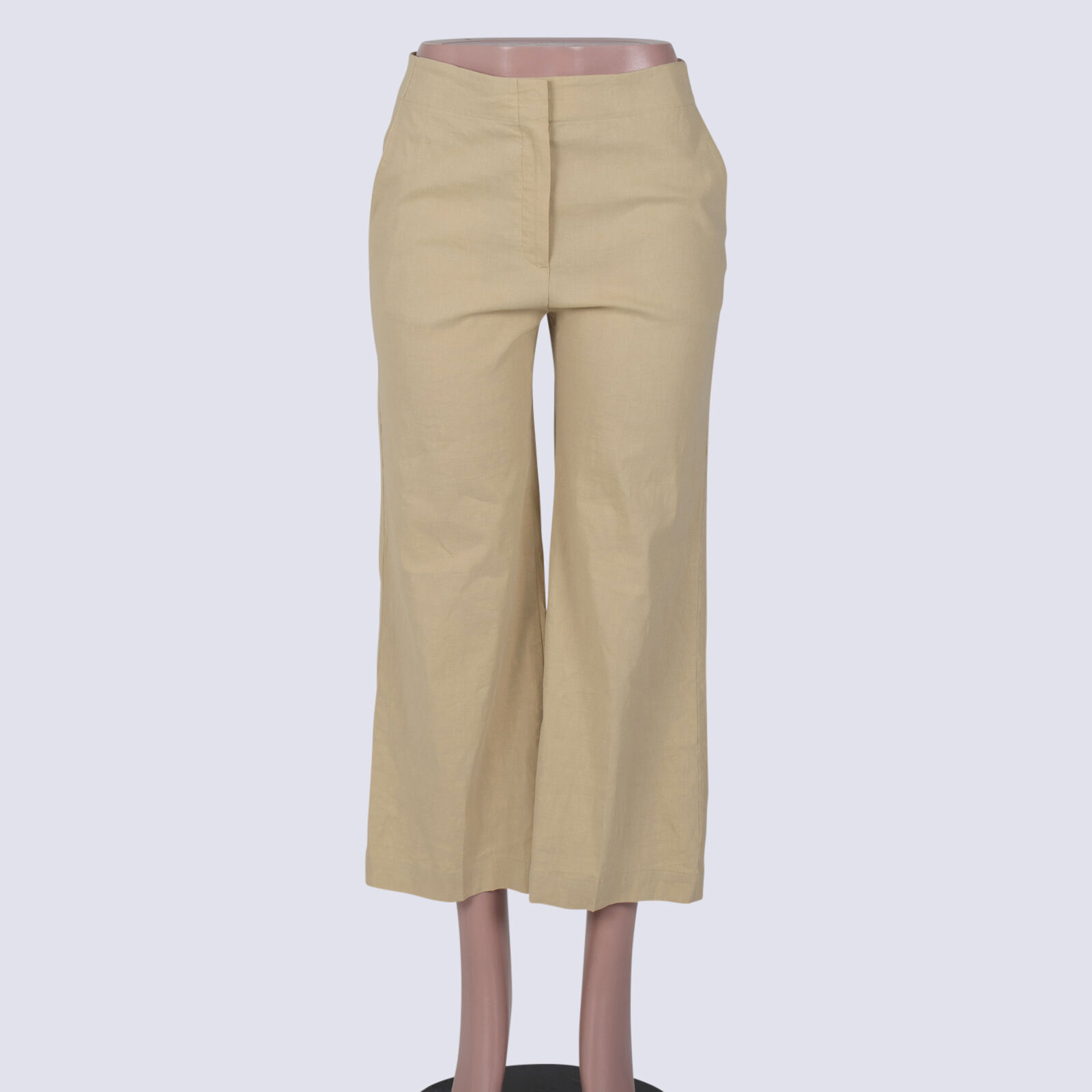 Theory Linen Blend Cropped Straight Leg Pants