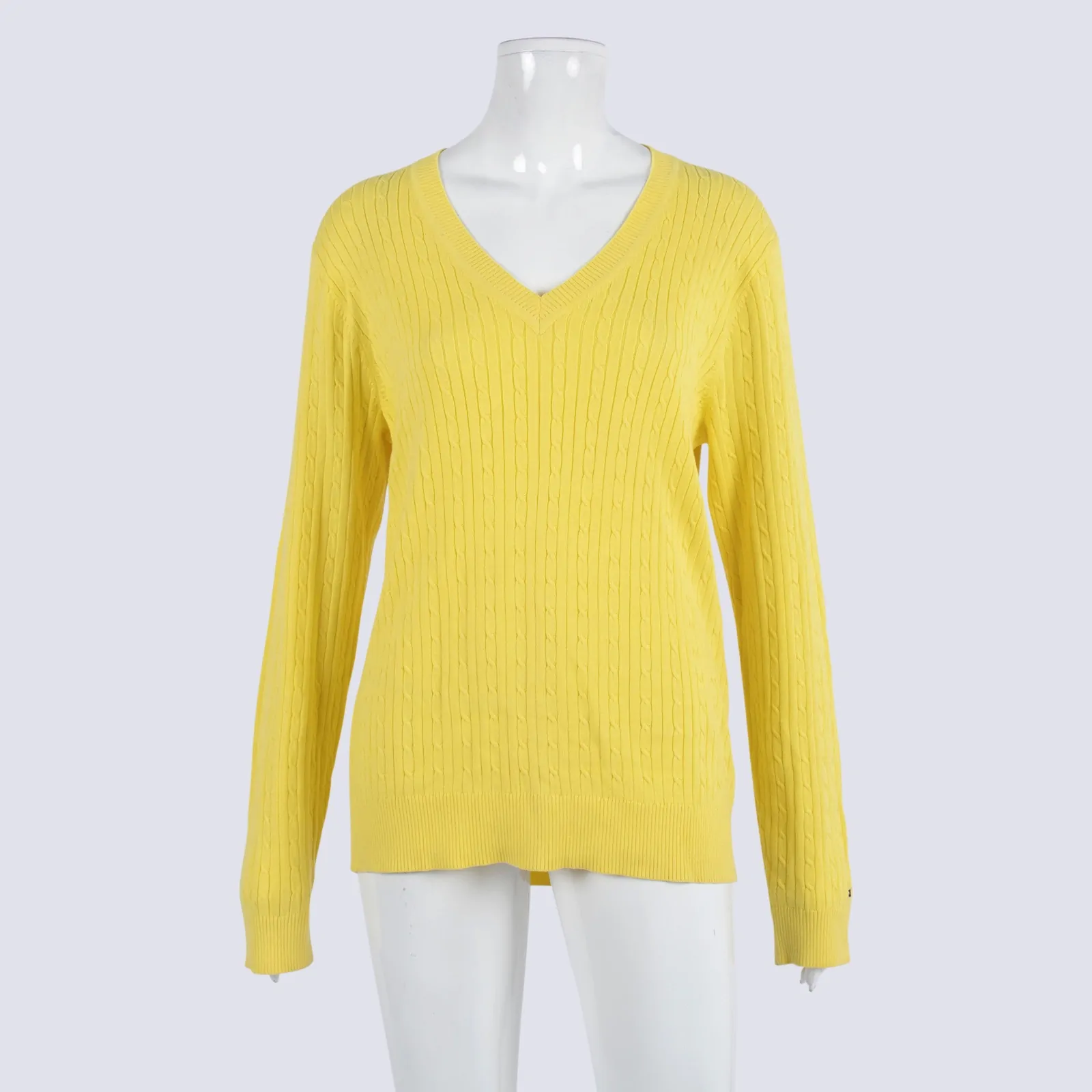 Tommy Hilfiger Yellow Cable V-neck Cotton Pullover