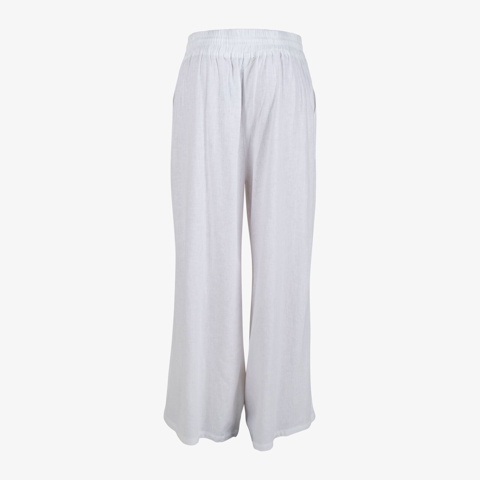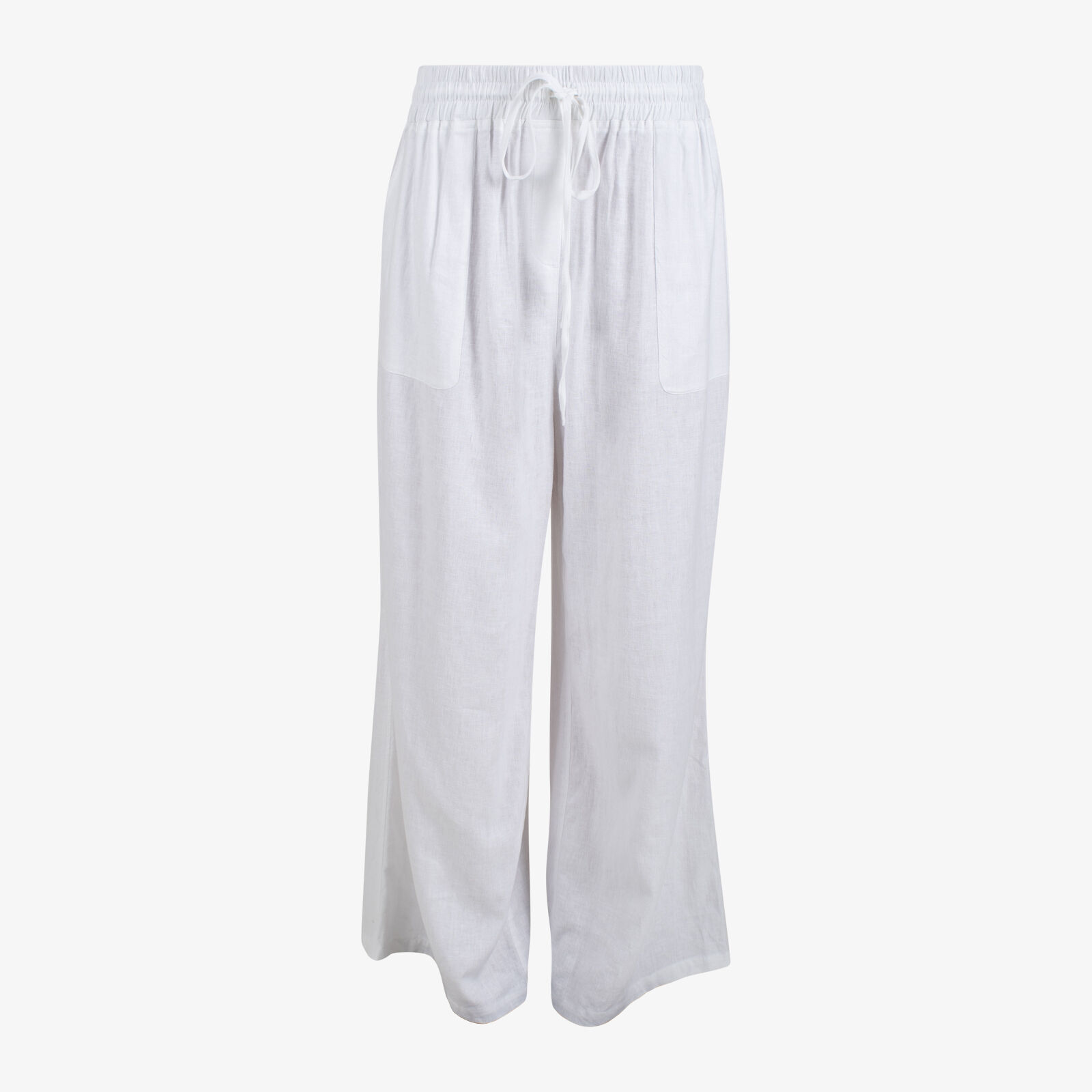Une Piece White Palazzo Linen Blend Pants With Drawstring Waist