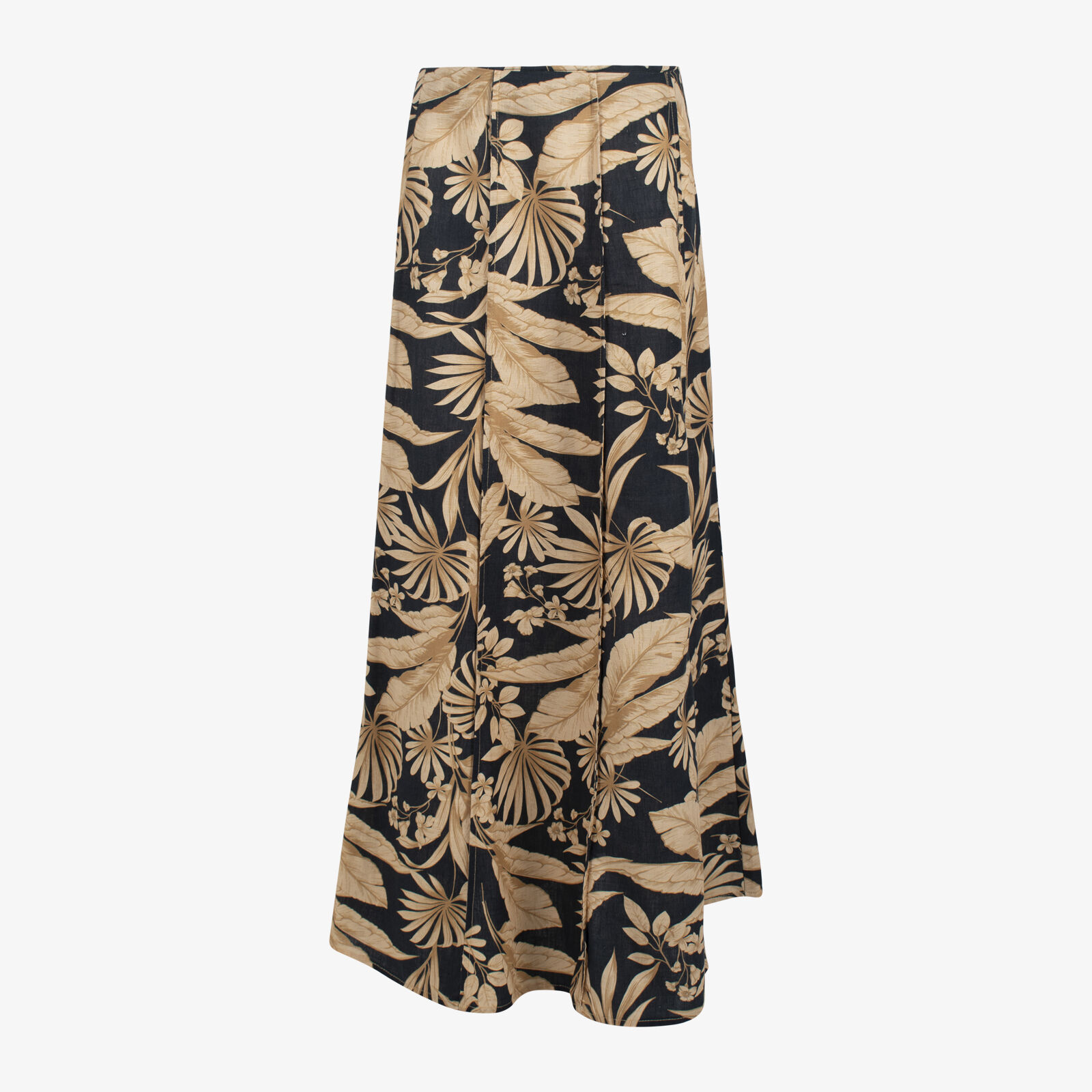 Veronika Maine A-lineLeaf Print Linen Maxi Skirt