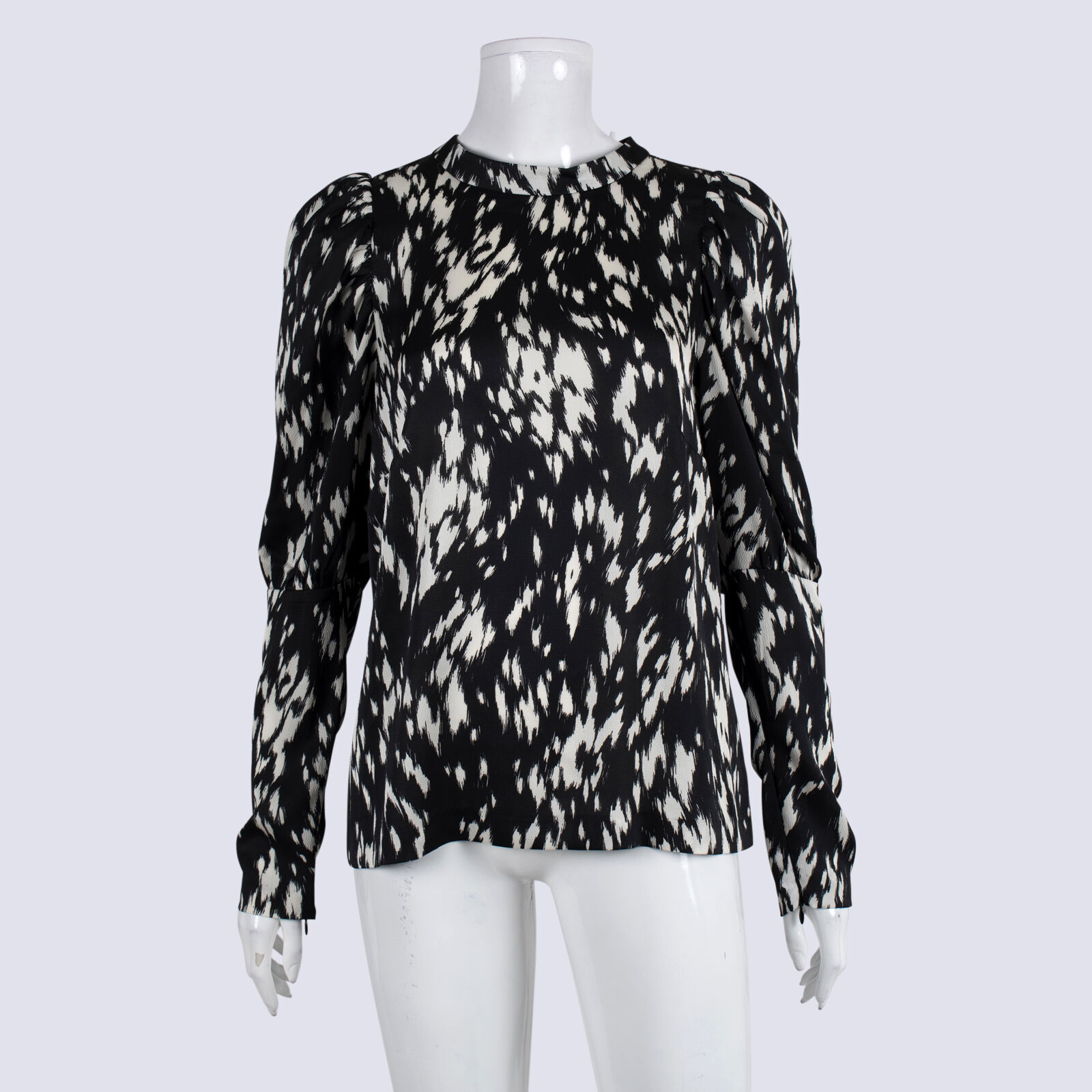 Veronika Maine Black & White Patterned Long Sleeve Blouse