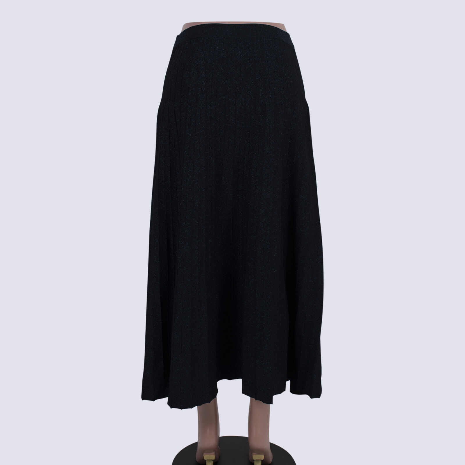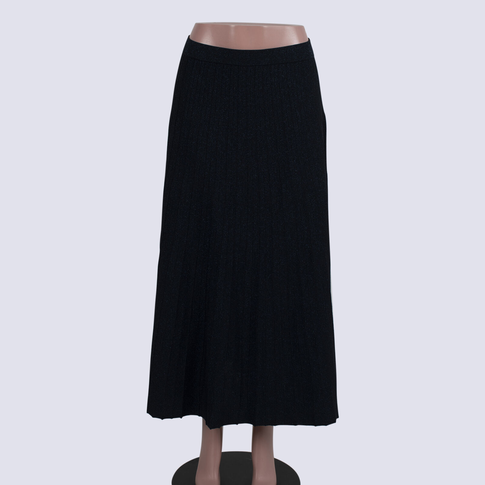 Veronika Maine Navy Metallic Pleated Knit Maxi Skirt