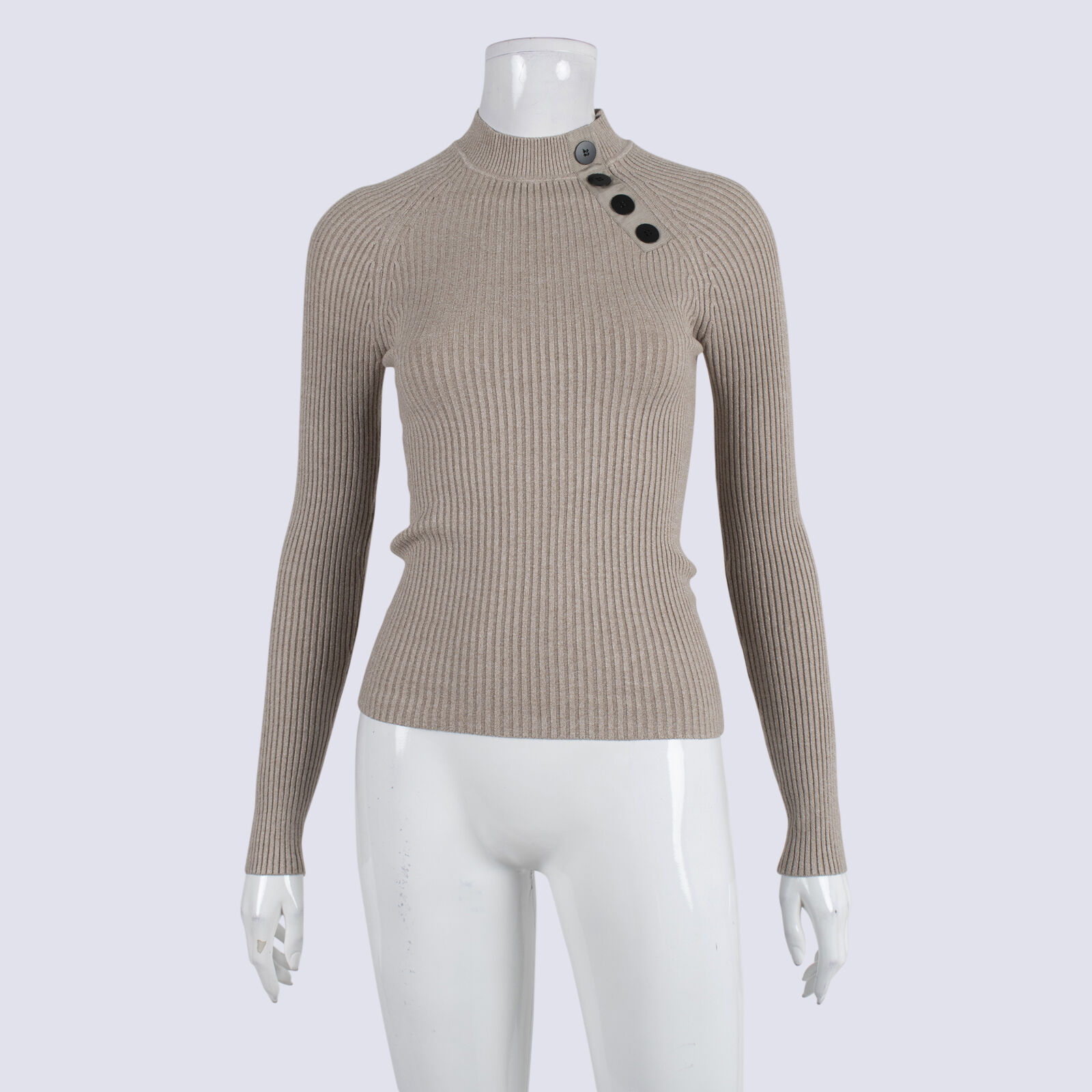Veronika Maine Sand Rib Knit Long Sleeve T-Shirt