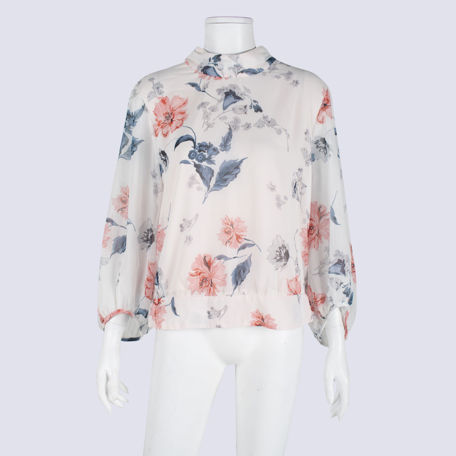 Veronika Maine Sheer Puff Sleeve High Neck Top
