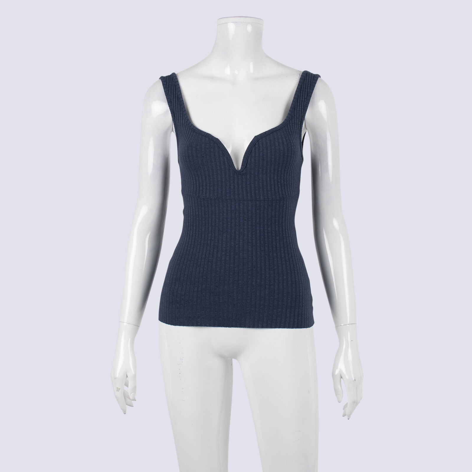 Viktoria & Woods Dorian Rib Knit Blue Singlet w Neckline Boning