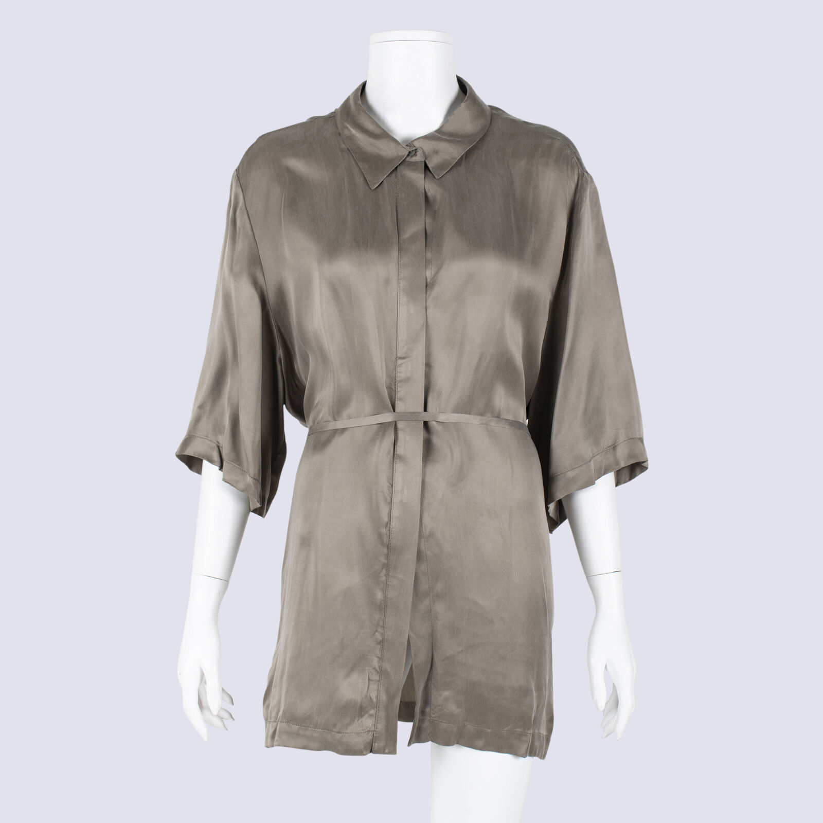 Viktoria & Woods Satin Short Sleeve Shirt With Tie Waist