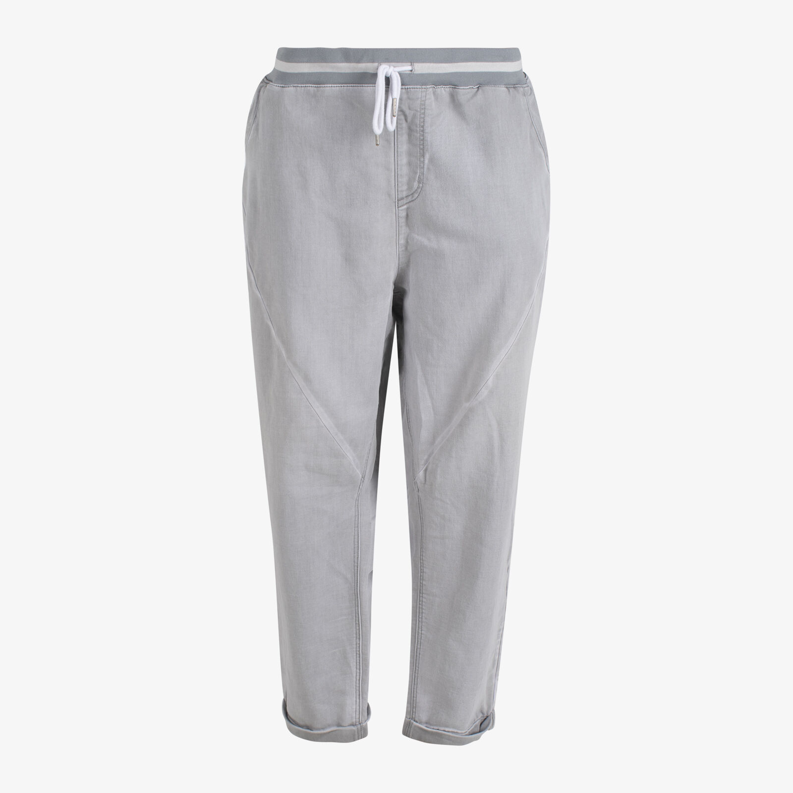 Virtuelle Grey Drawstring Waist Cropped Jeans