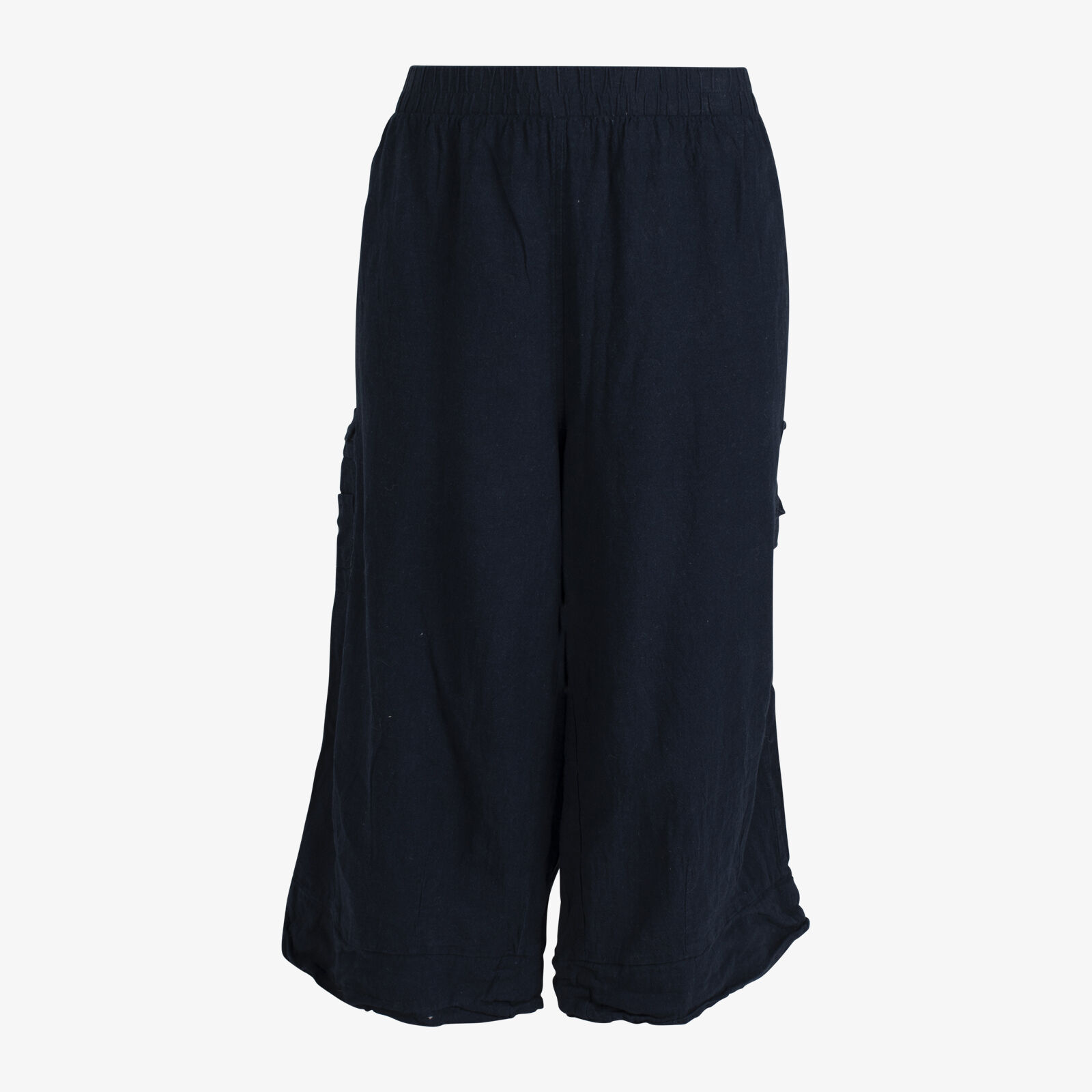 Virtuelle Navy Elastic Waist Linen Blend Cropped Pants