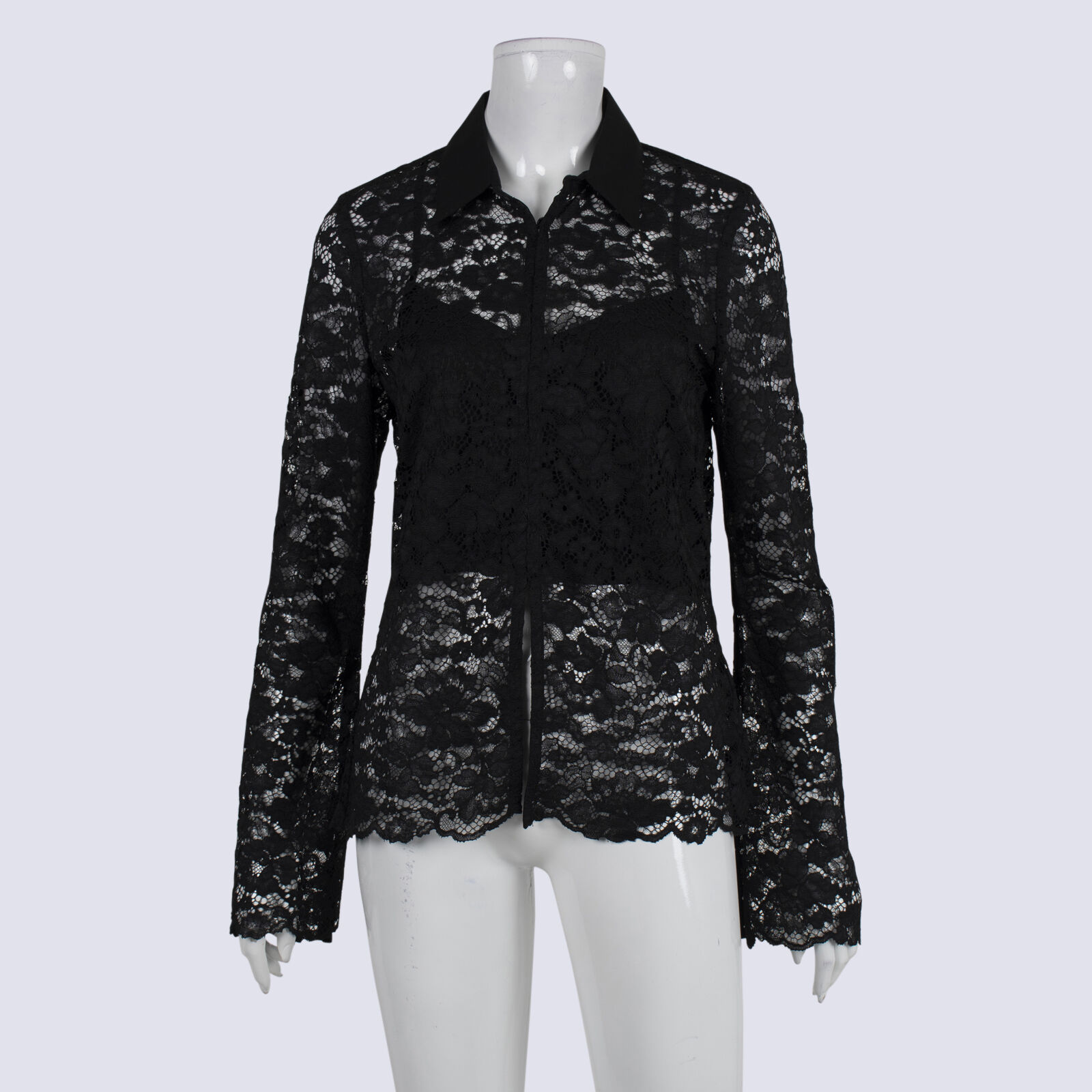 Witchery Black LS Lace Shirt With Built-in Cami