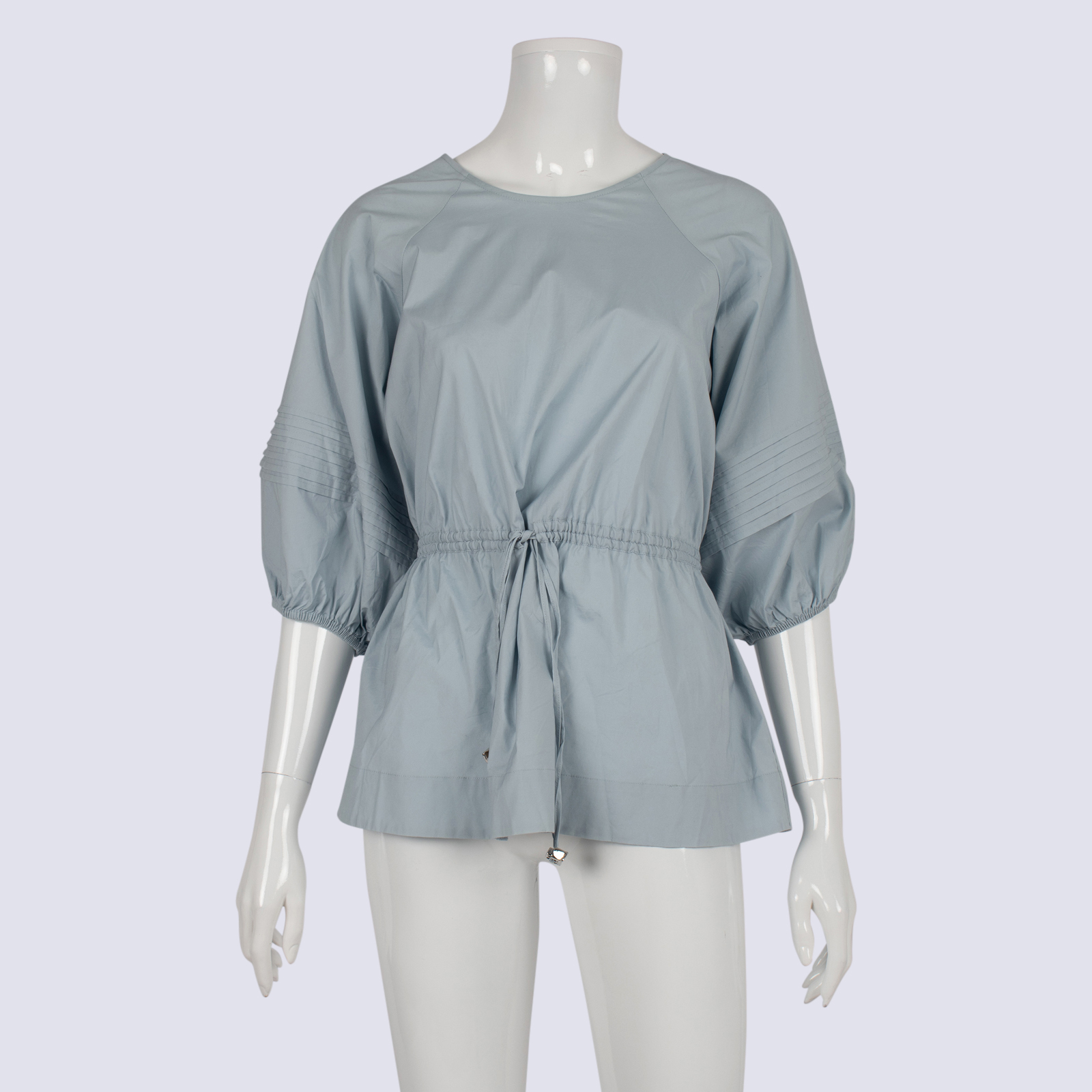 Witchery Blue Drawstring Waist Puff Seeve Top