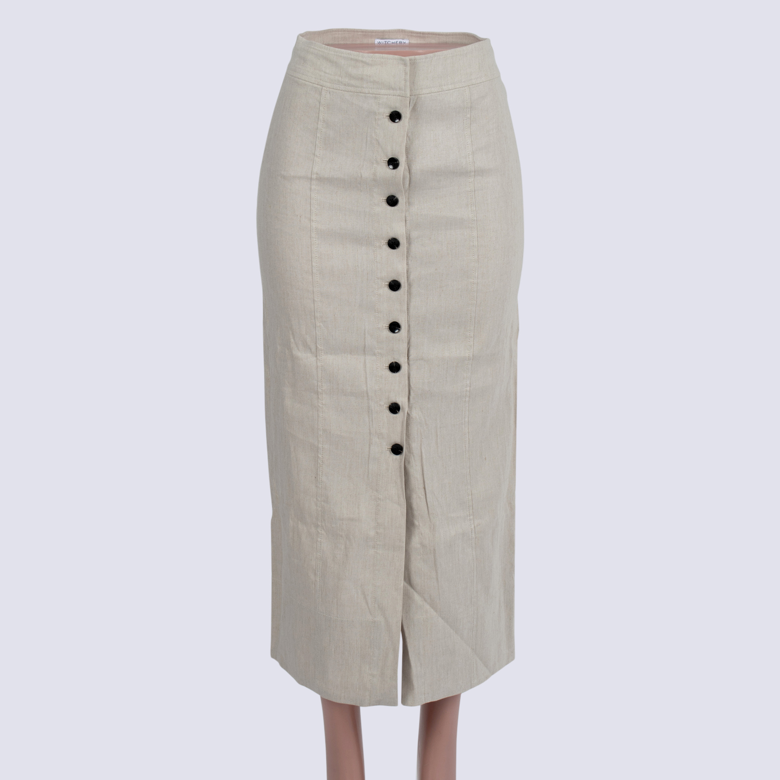 Witchery Linen Blend Button Down Midi Skirt