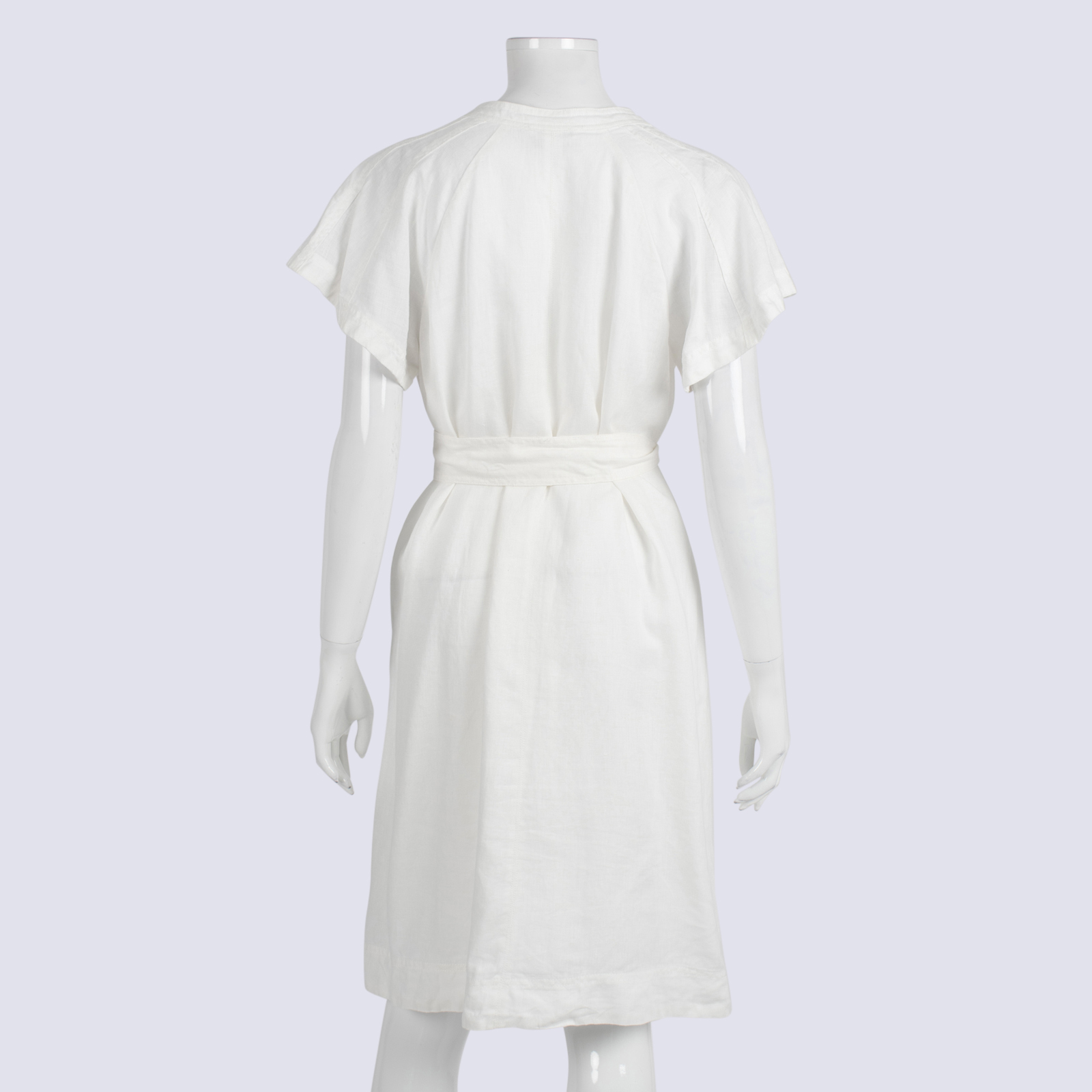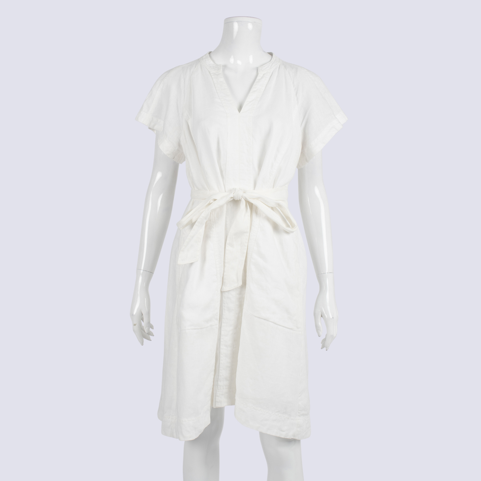 Witchery White Short Sleeve A-line Tie Waist Linen Dress