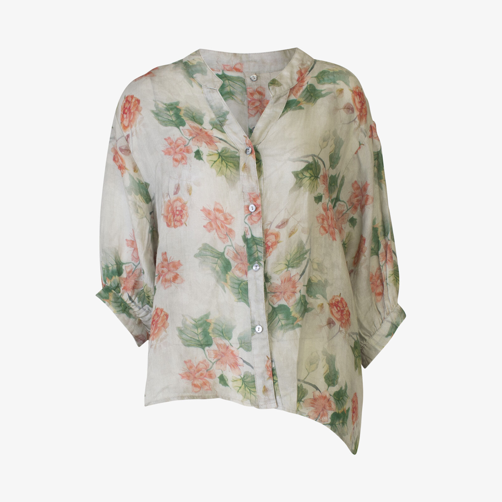 Worthier Floral Print Short Sleeve Linen Shirt