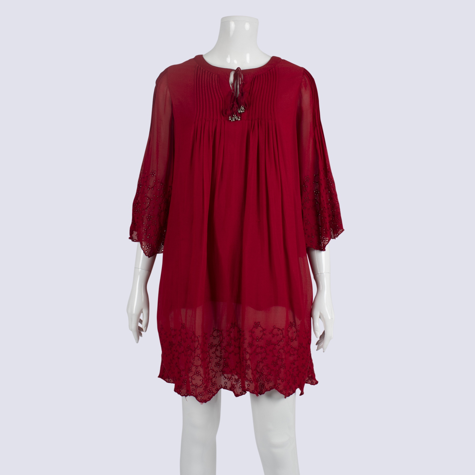 Zara Deep Red Lace Detail Tunic Mini Dress