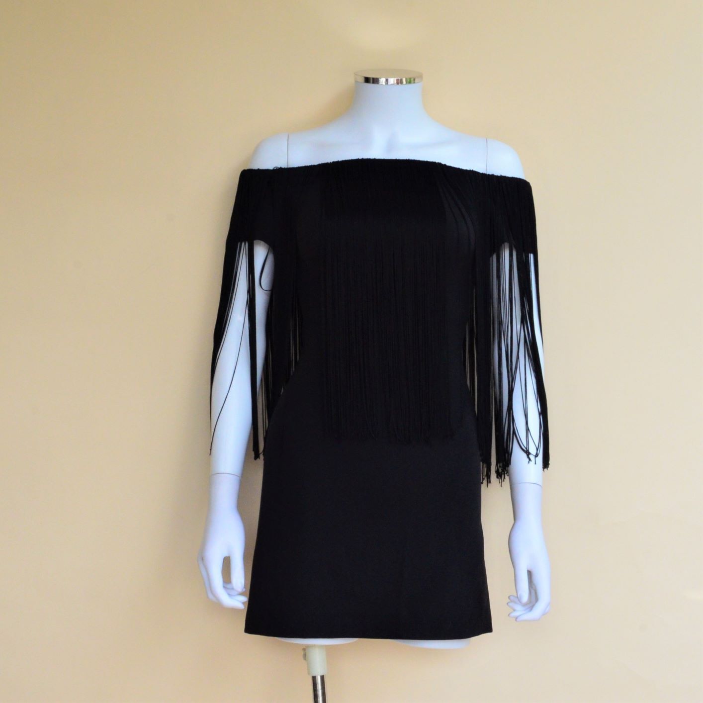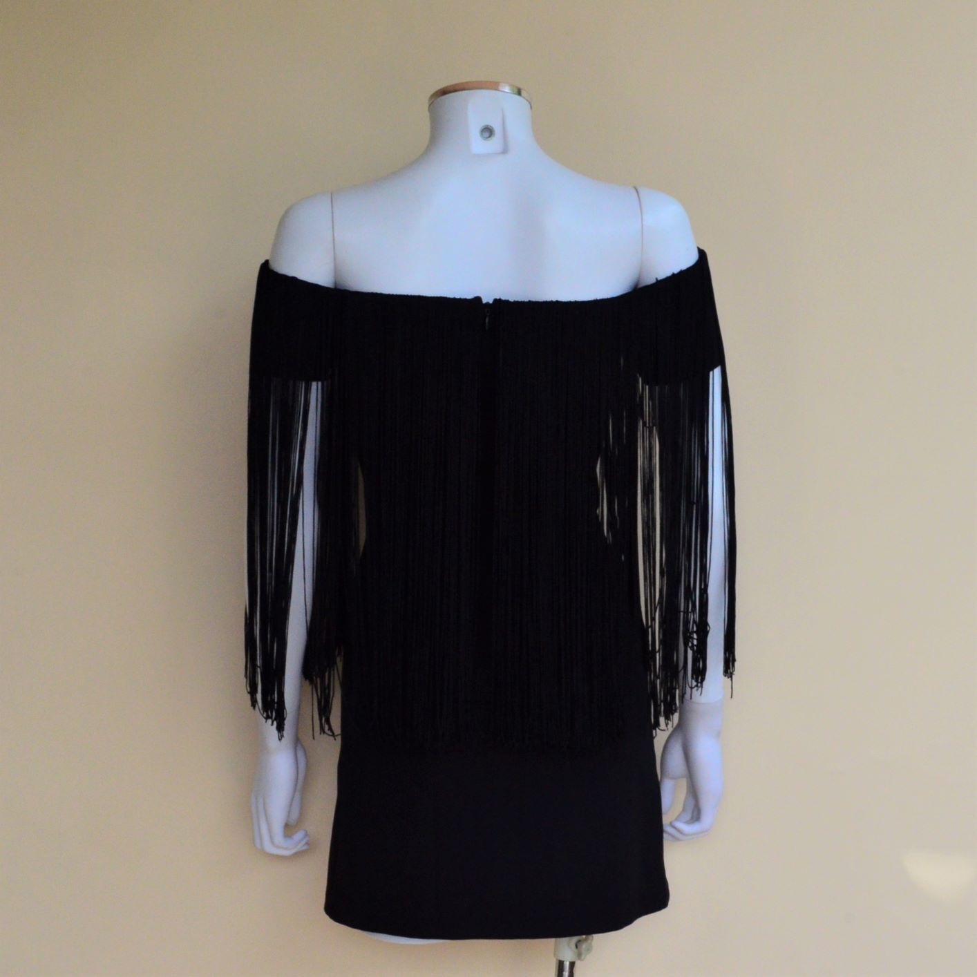 Zara Off Shoulder Fringed Black Mini Dress