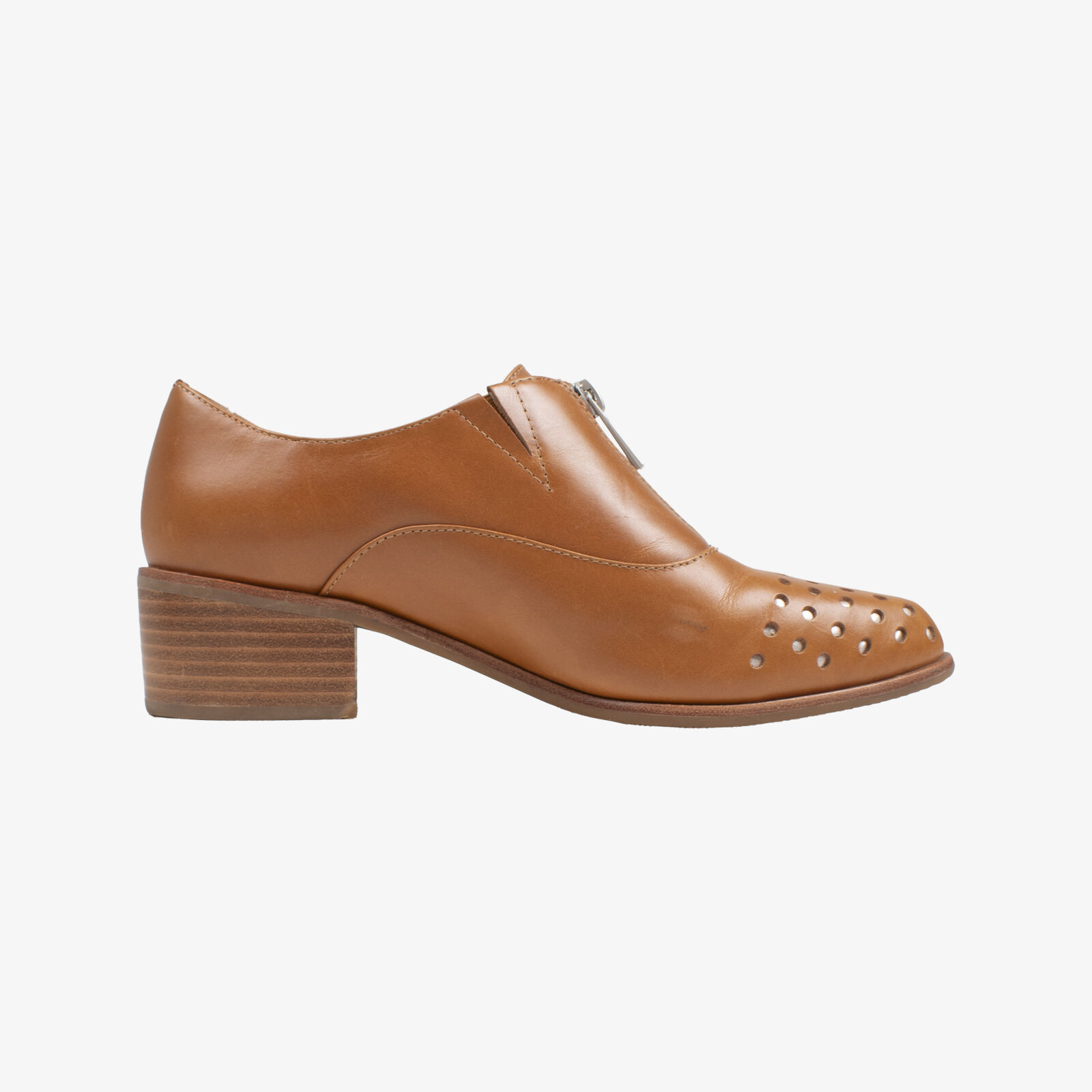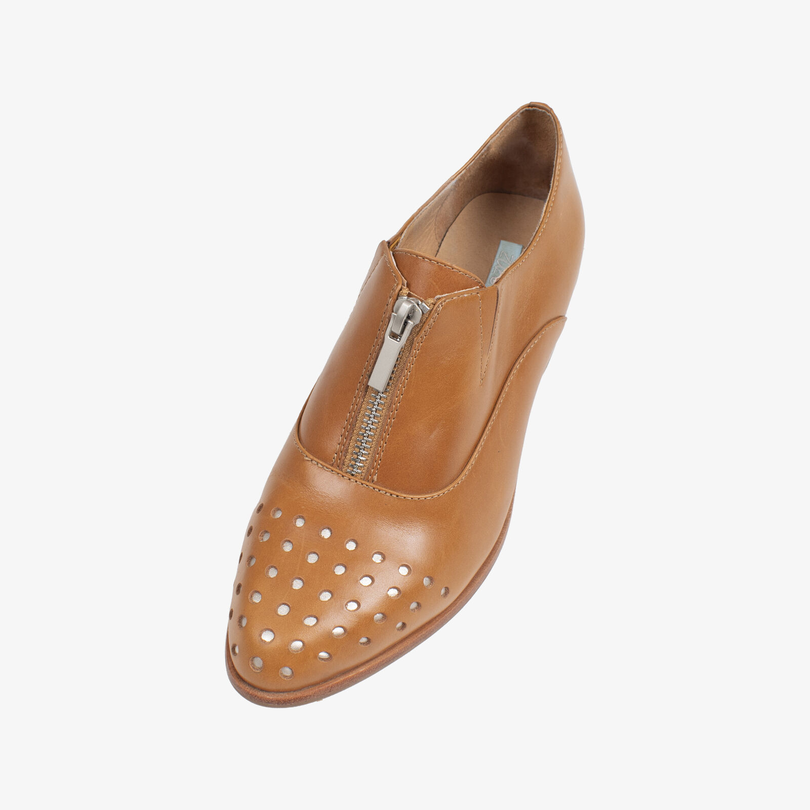 Zazou Tan Leather Brogues With Zipper