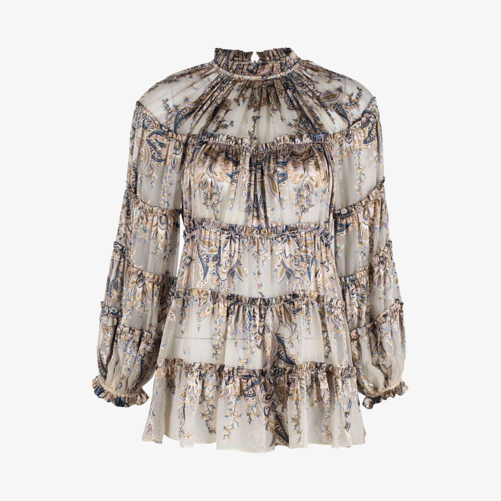 Zimmermann Sheer Paisley Tiered Silk Blend Blouse