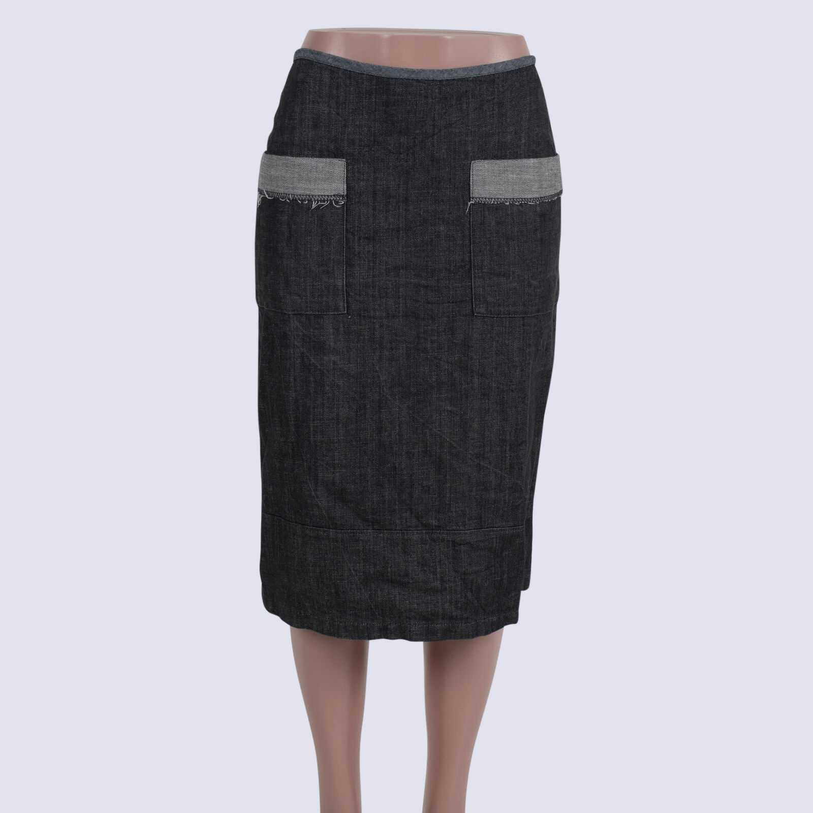 Zoe.O Grey Denim Skirt With Front Pockets