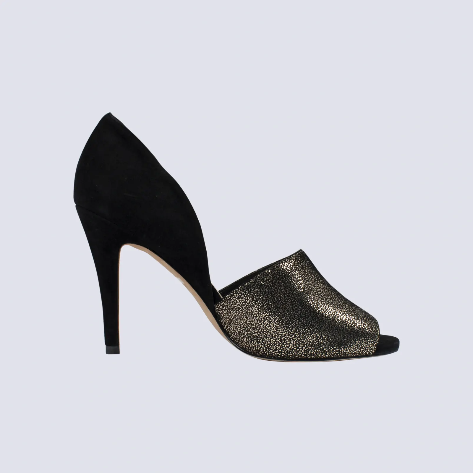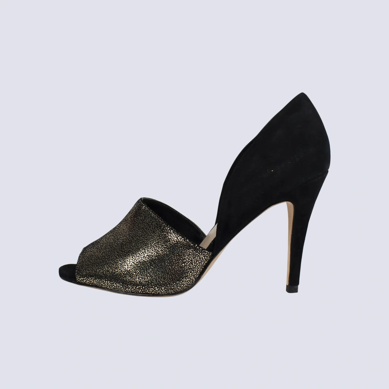 Zomp Peep Toe Gold and Black Suede Shoes